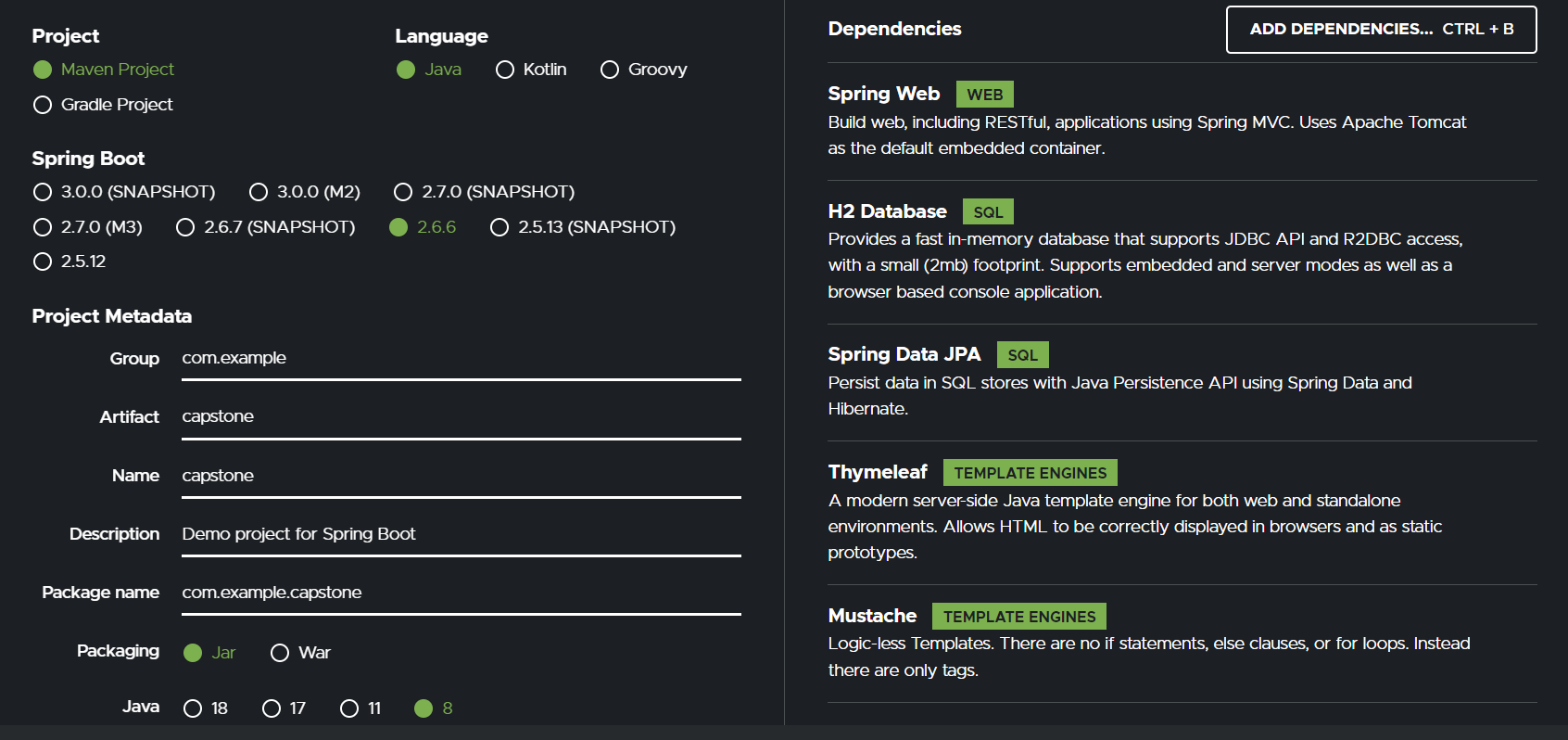 templates 폴더에 들어있는 html 파일을 찾아갈 수 있도록 해줄려면 Thymeleaf 의존성을 추가해주면 된다.