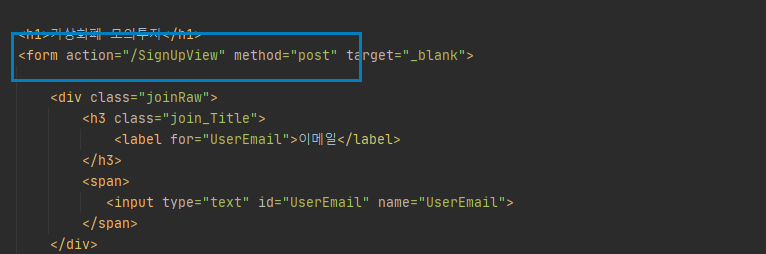 //SignUpForm에서 Post 방식으로 요청이 들어온다면 해당 페이지 반환하기
