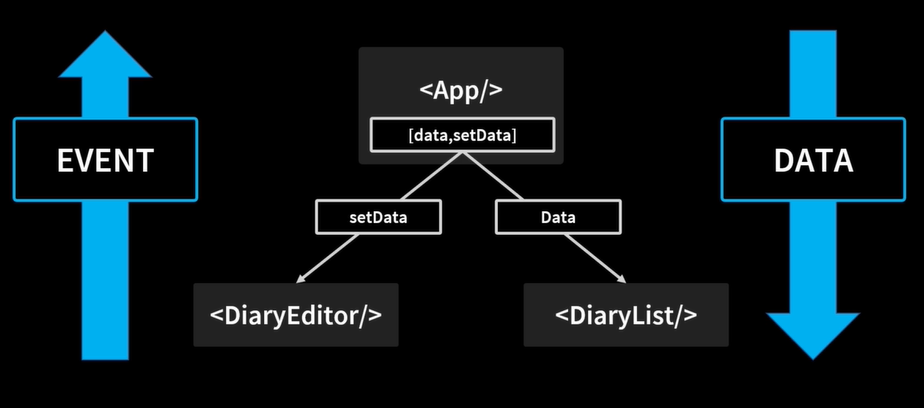 상태를 변화시키면 된다. DiaryList 컴포넌트는 App 컴포넌트의 data state를 diaryList로 사용하고 있기 때문이다.