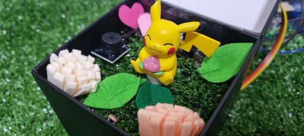 피규어의 컨셉 상 피카츄가 있는 잔디 정원을 만들고 싶었고 빛을 감지하는 조도 센서를 이용해 밝은 오후를