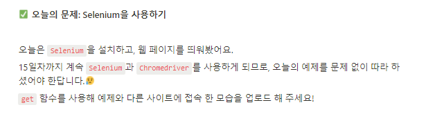 * requests와 BeautifulSoup는 정적 크롤링을 위한 라이브러리 였다면 selenium은 동적 크롤링을 위한 라이브러리.