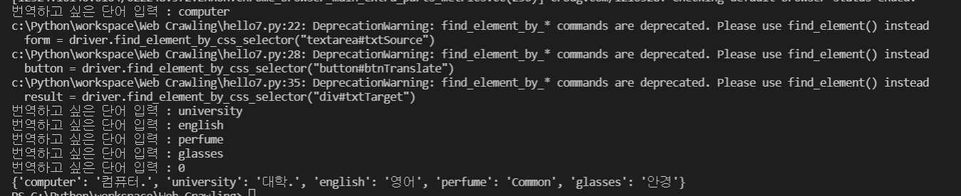 word = input("번역하고 싶은 단어 입력 ( 0 입력시 종료 ) : ")